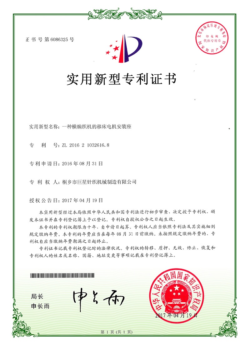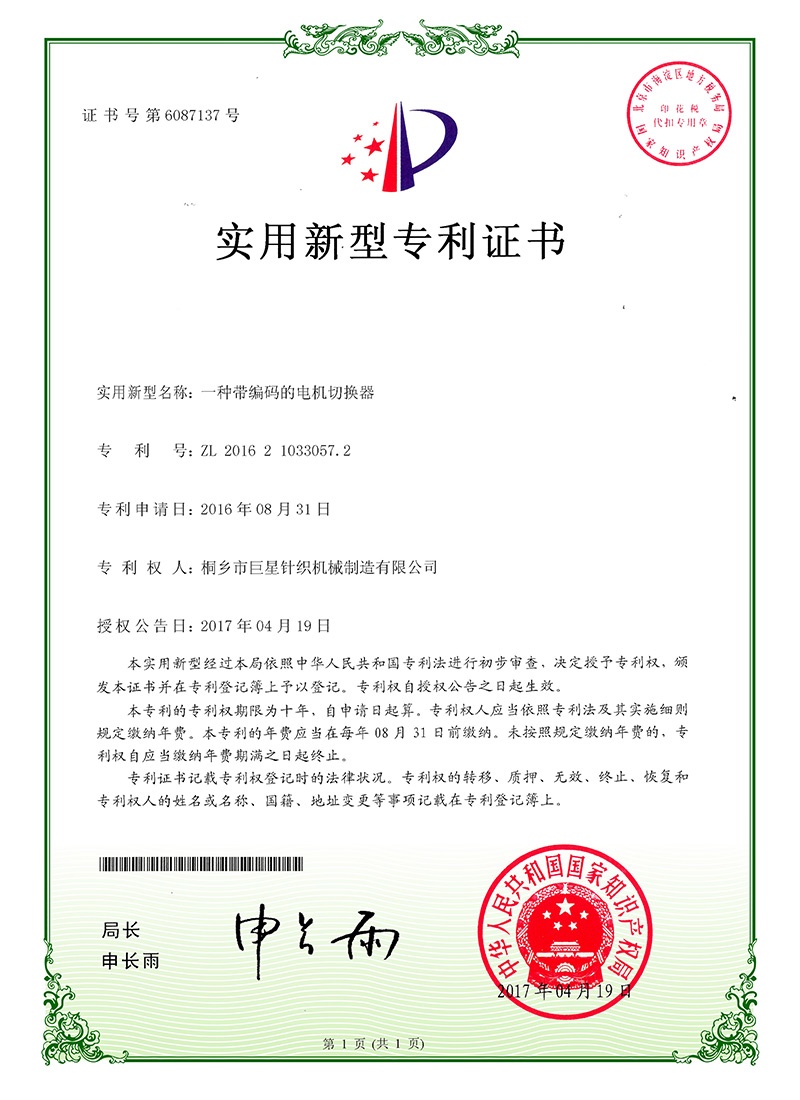 桐鄉市巨星針織機械制造有限公司是以設計、開發、制造針織機械為主的浙江省高新技術民營企業,主要以研發、生產電腦橫機為主。公司位于商賈云集的杭白菊之鄉、魚米之鄉、絲綢之府、文化之邦的桐鄉市,坐落于桐鄉市桐鄉經濟開發區,占地面積120畝,南依桐鄉高鐵站高速路口,交通便利,區位優勢明顯,巨星機械在此翻開輝煌篇章。