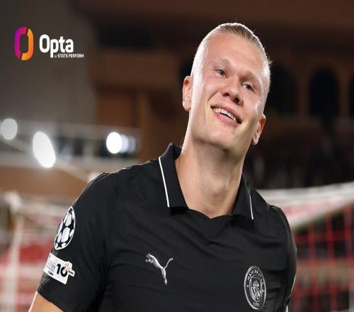 在与摩纳哥的欧冠联赛阶段第二轮比赛中打入两球后,曼城前锋哈兰德欧冠生涯50次出场已打入52球,超过了9支球队...